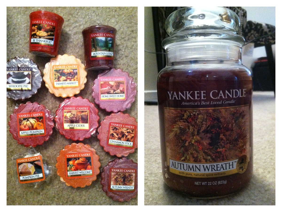 Fragrance is a huge thing for me in the Fall. I’ve recently rediscovered my love for candles/wax, and I definitely took advantage of Yankee’s $1 tart sale and $10 off coupon this past week. My favorite fragrances in Fall always include at least a hint of cinnamon spiciness. That is the definition of creating a warm homey atmosphere for me. I had to pick up Autumn Wreath, which has that cozy cinnamon note I love so much, and discovered a few new ones in the tarts as well as old favorites.