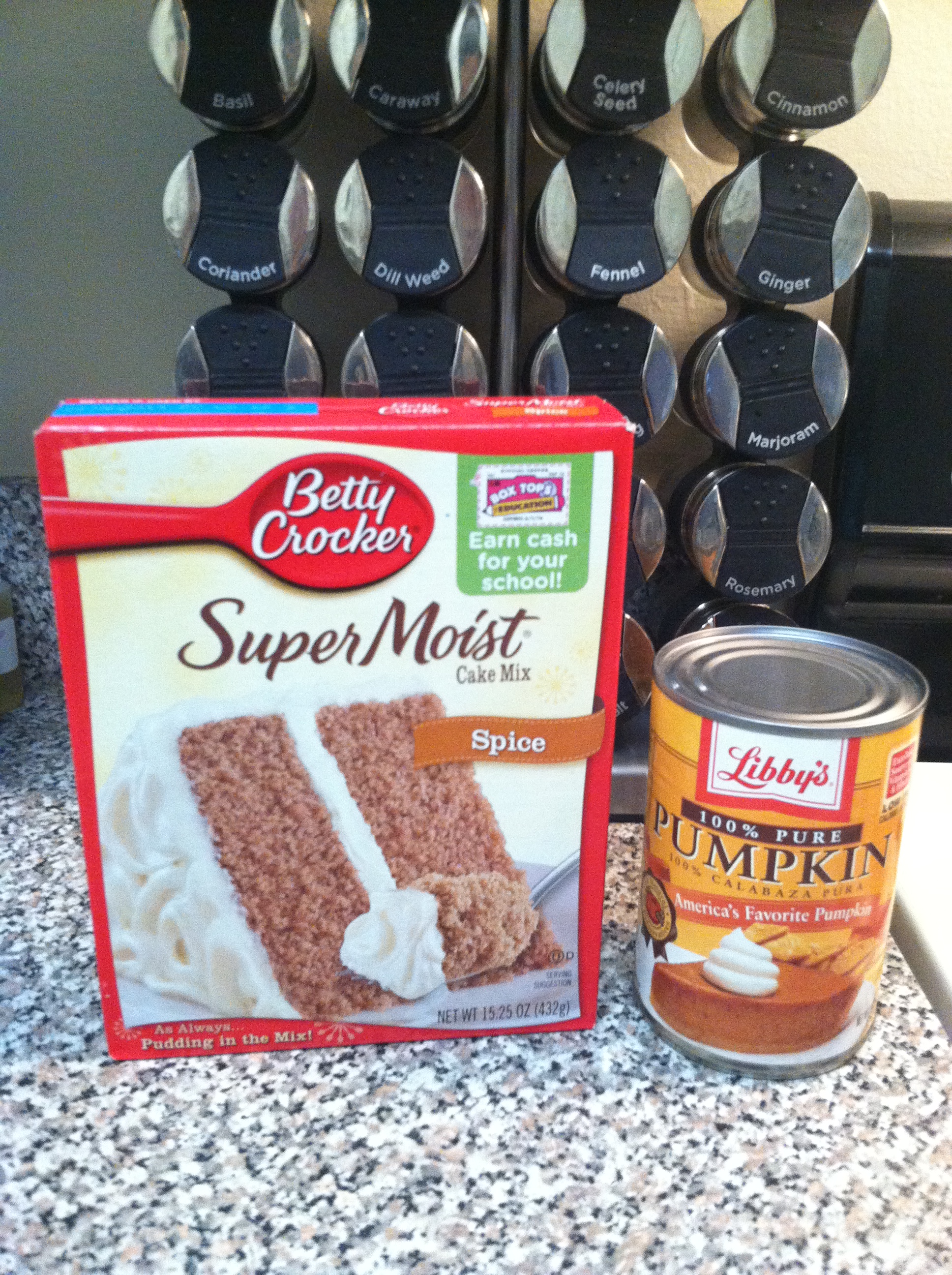 One part I love about this time of year are the yummy foods and drinks that come out. Pumpkin, as we all know, is a popular one to work with. I was very excited to find this recipe on Pinterest yesterday and almost promptly went to get the ingredients. All I needed was cake mix and pumpkin puree!