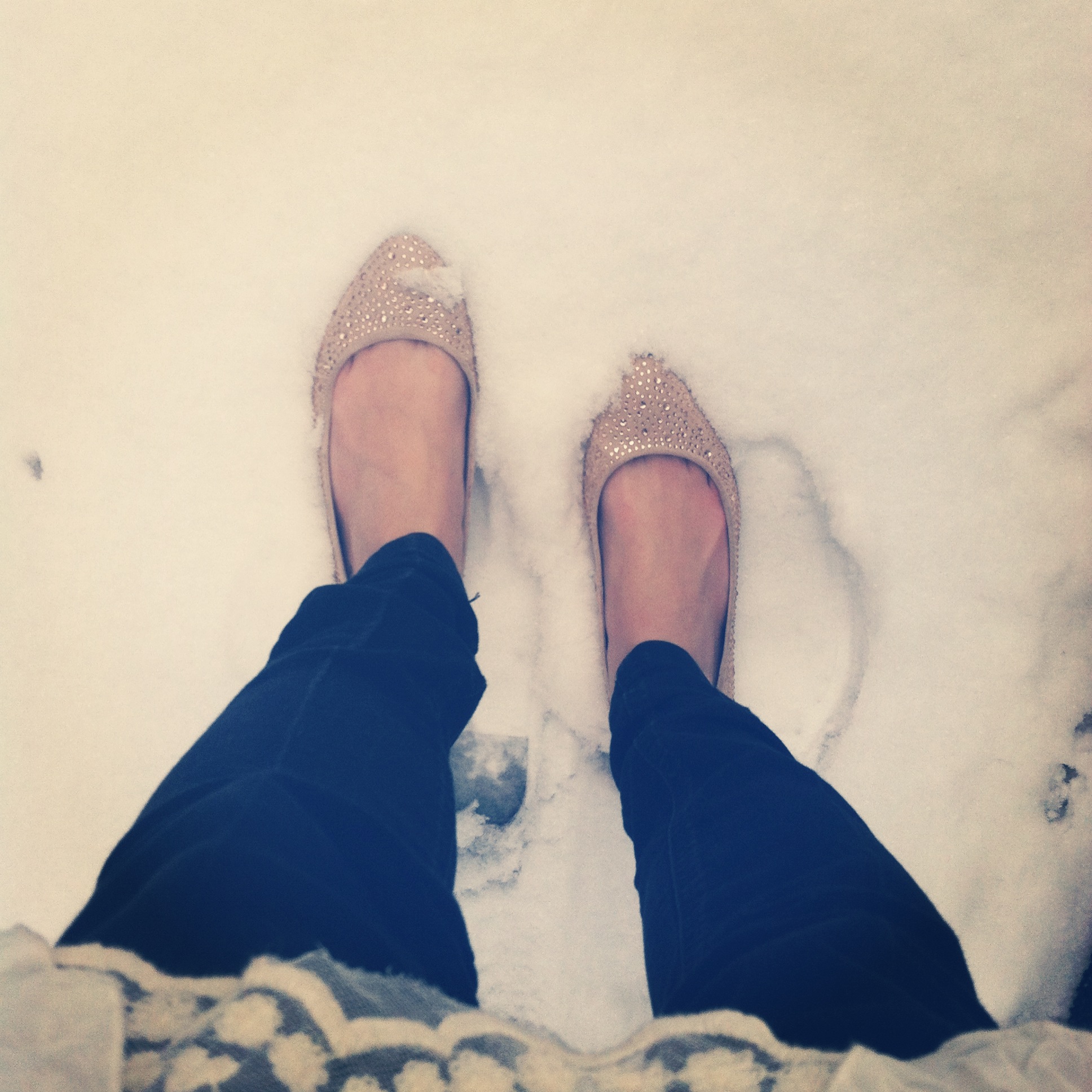 “Wore the wrong shoes for an impromptu snow day.”