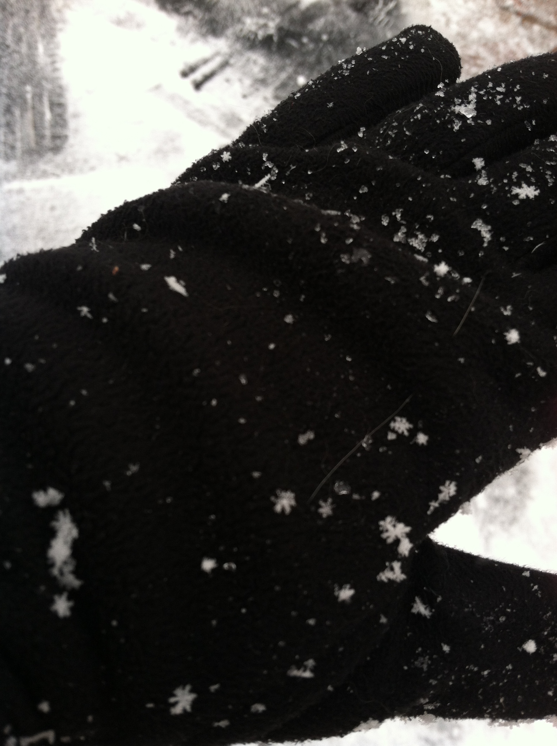 {Some days it’s the small things, like seeing whole snowflakes finding a home on my gloves}