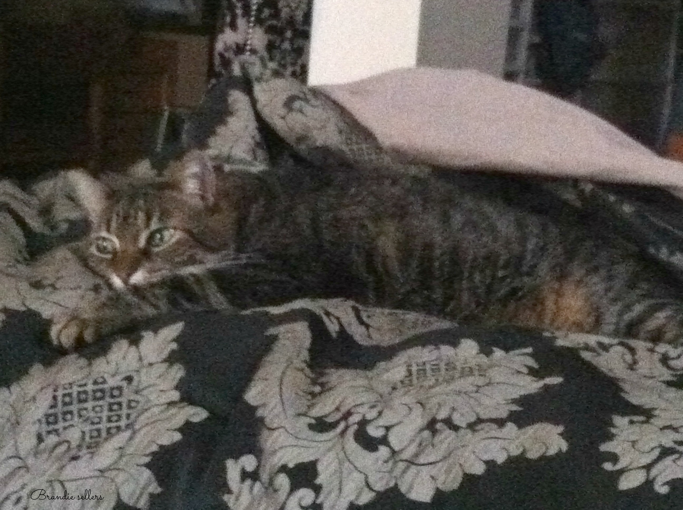 {And this lazy kitty gets to have a lazy snow day with mom and dad safe and warm at home! We call this position “le sigh”.}