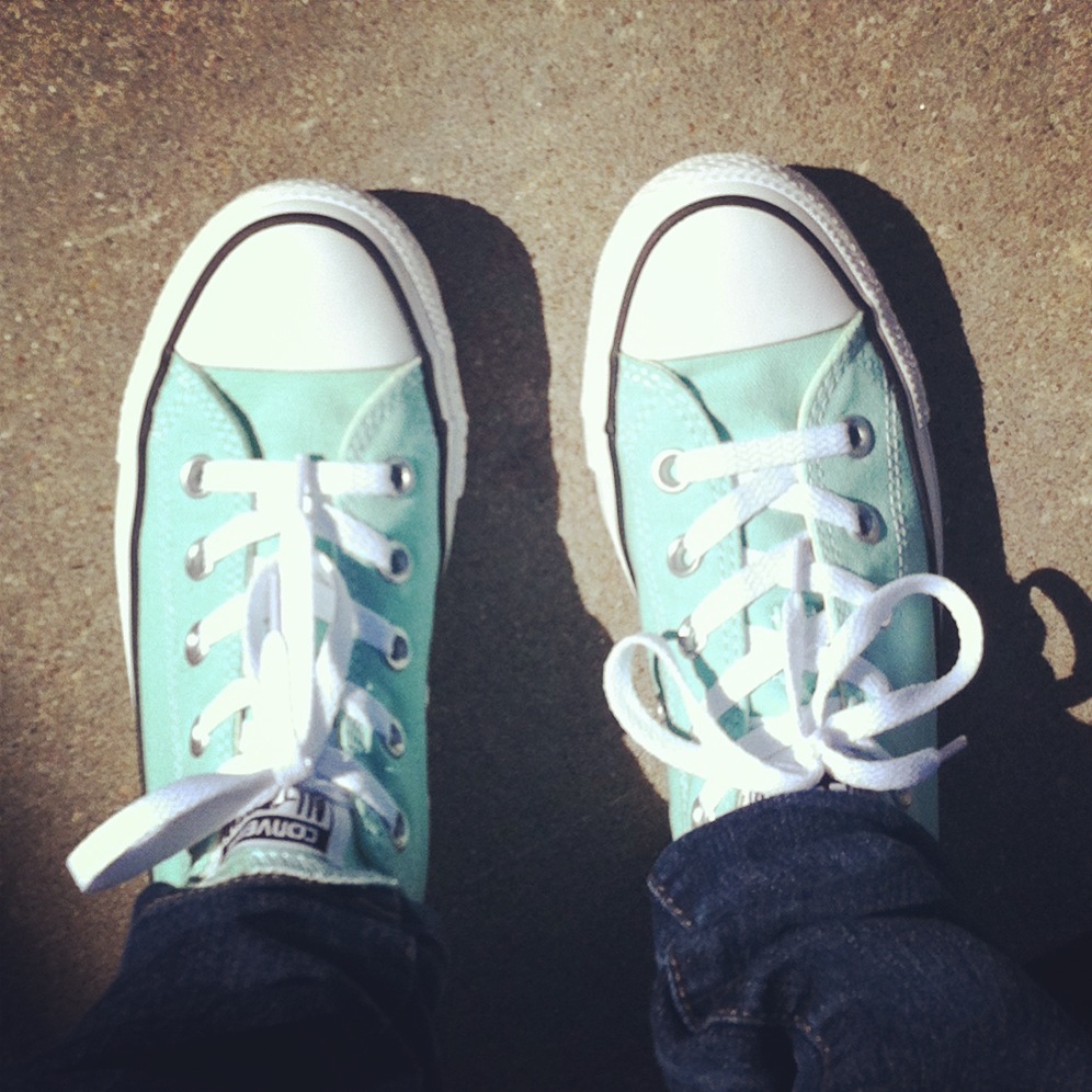 {My first pair of Converse in Beach Glass. Pinterest made me do it…But I’m in love with the color!}