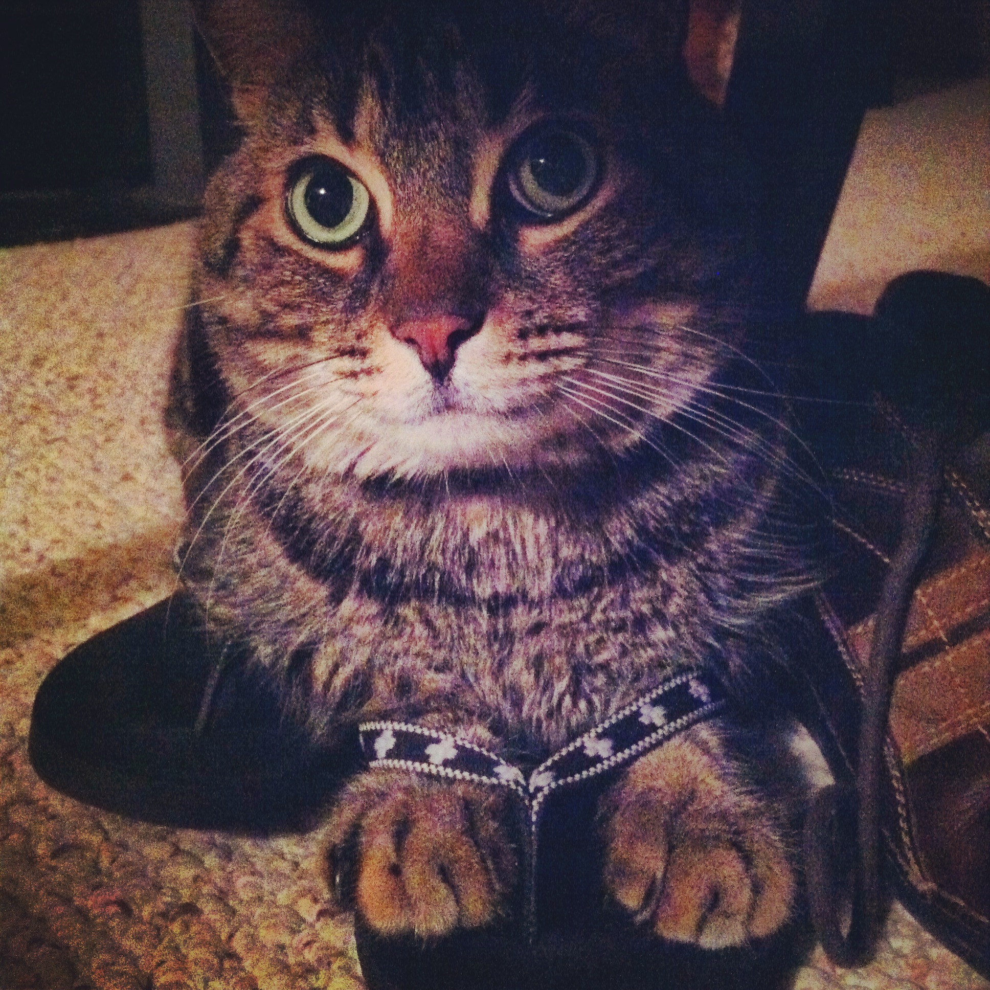 {Both paws. In the flip flop.}