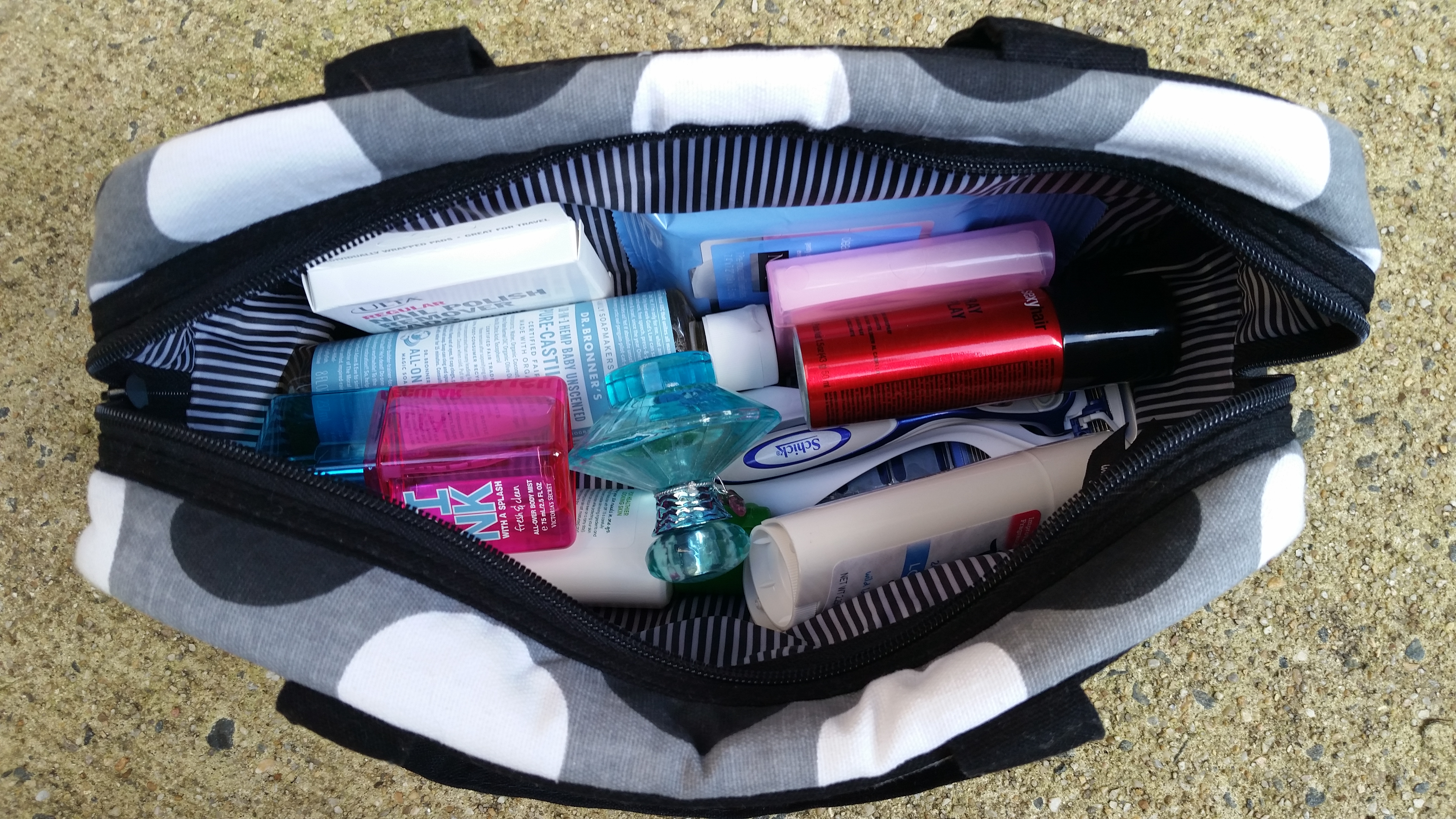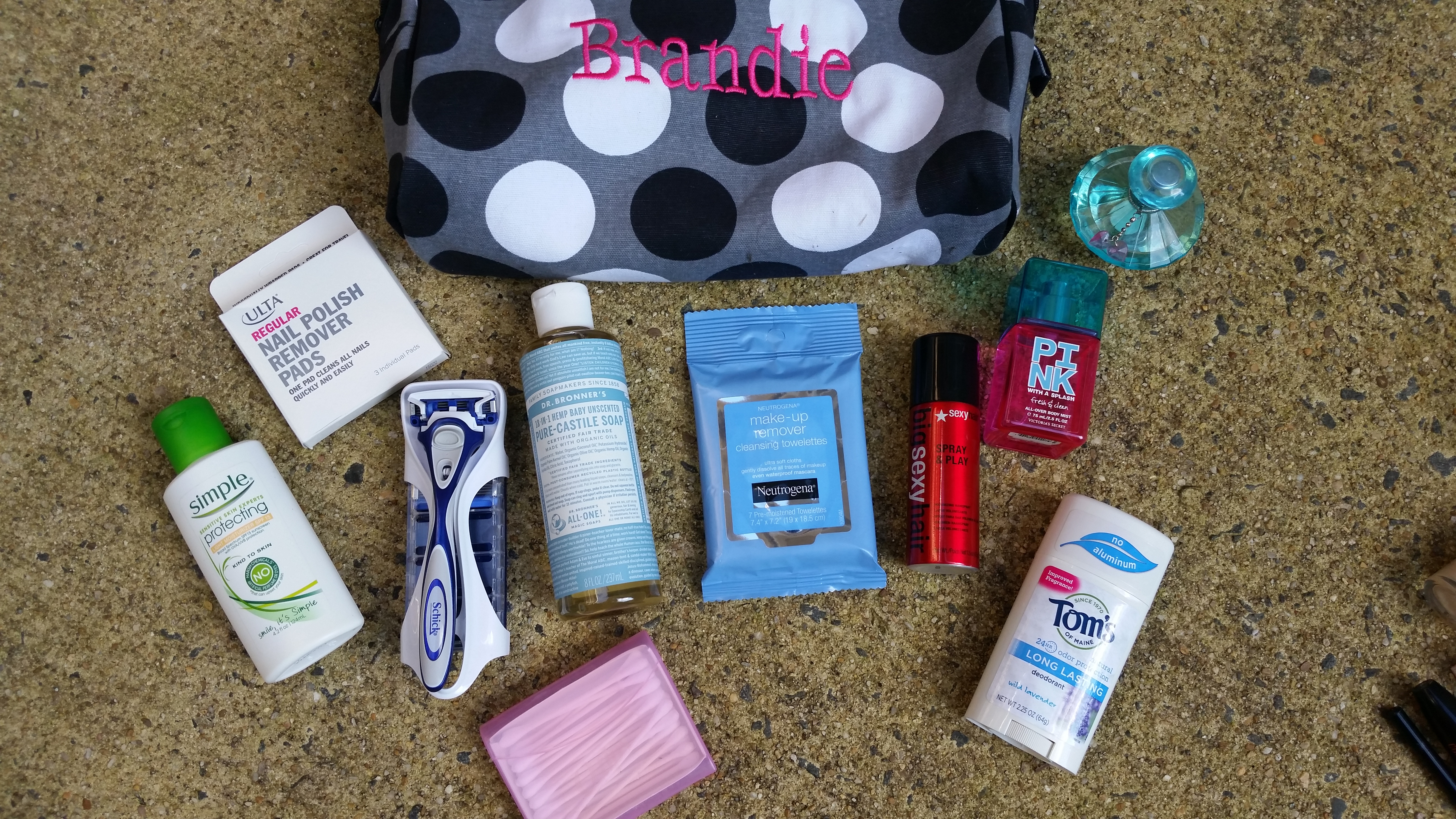 Beauty Travel EssentialsThe bag with my name on it was given to me as a gift a very long time ago. I always keep most of my personal care and certain beauty items in there such as face lotion, deodorant, and makeup wipes. I’m currently using and bringing in this bag my Tom’s deodorant in Lavender, Simple face lotion, Nail Polish remover pads from Ulta (I found these at the checkout), q-tips,Neutrogena makeup wipes (the travel pack and I’m trying them for the first time. I use Aveeno, otherwise and love them), big sexy hair travel hairspray, Victoria’s Secret body spray from the PINK like in fresh & clean, and Curious perfume by Britney Spears (because I’ve had that one for ages and it’s about time to use it and move on, let’s be honest). I’m also bringing my Schick Hydro 5 razor (because I swear a man’s razor is better than the one they make for women), and Dr. Bronner’s Unscented Pure Castile Soap (that can be used for 18 different things! They say it on the bottle, I’m not making it up. You can wash veggies with this soap!) that I’ll be using as both body and face wash. I’m bringing the 8 oz bottle of the Dr. Bronner’s because it’s much more travel friendly than the 32 oz bottle that I typically use. Not pictured is my Aveeno shampoo and conditioner. I usually put the shower related items in a plastic grocery bag and tie is shut. It’s not glamorous but in case anything spills, the plastic catches it without anything getting on my clothes in the suitcase.