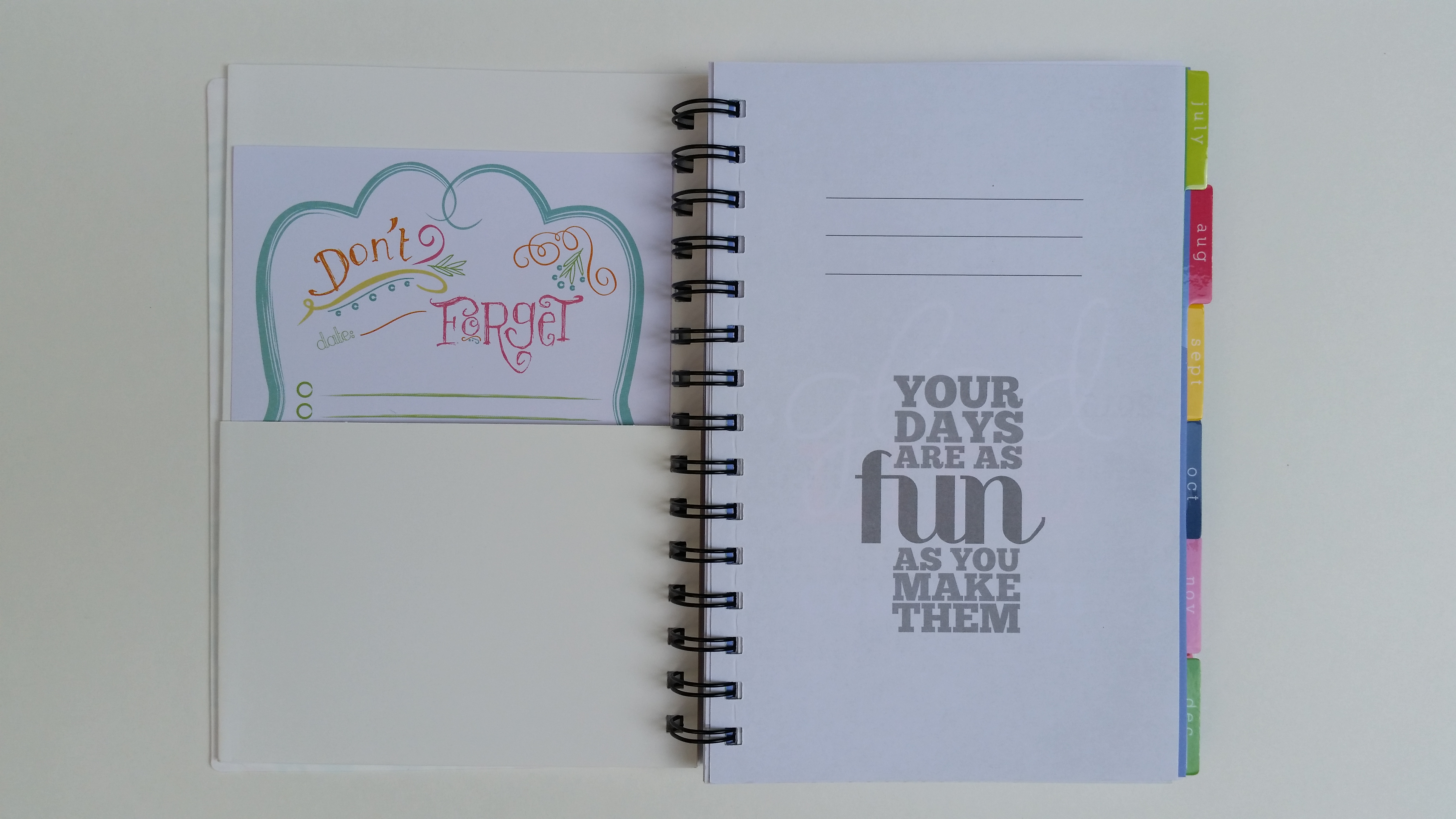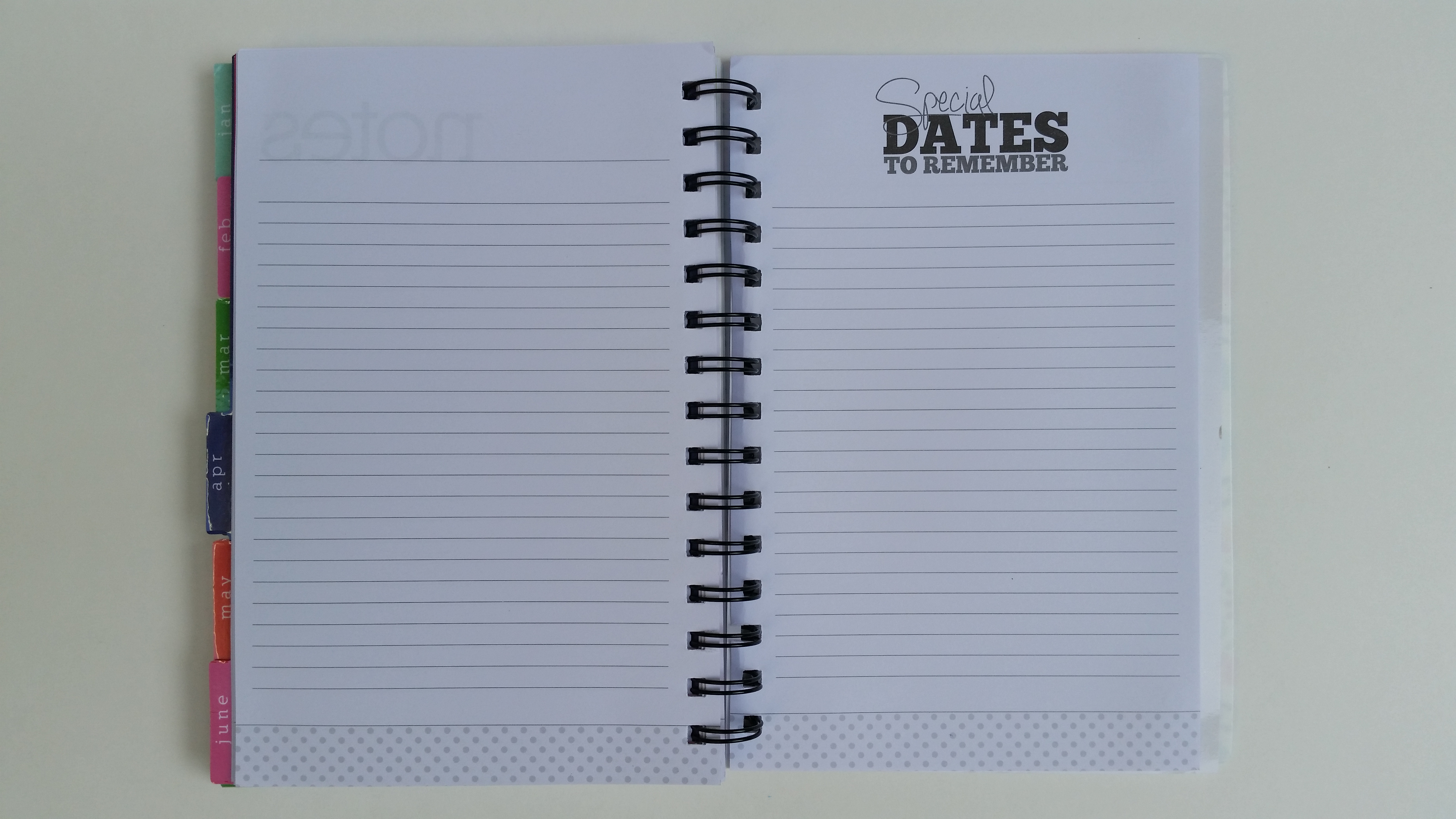 Turn the tabbed page and you have a space for important dates (love the text on that, by the way!) and a place to write notes.