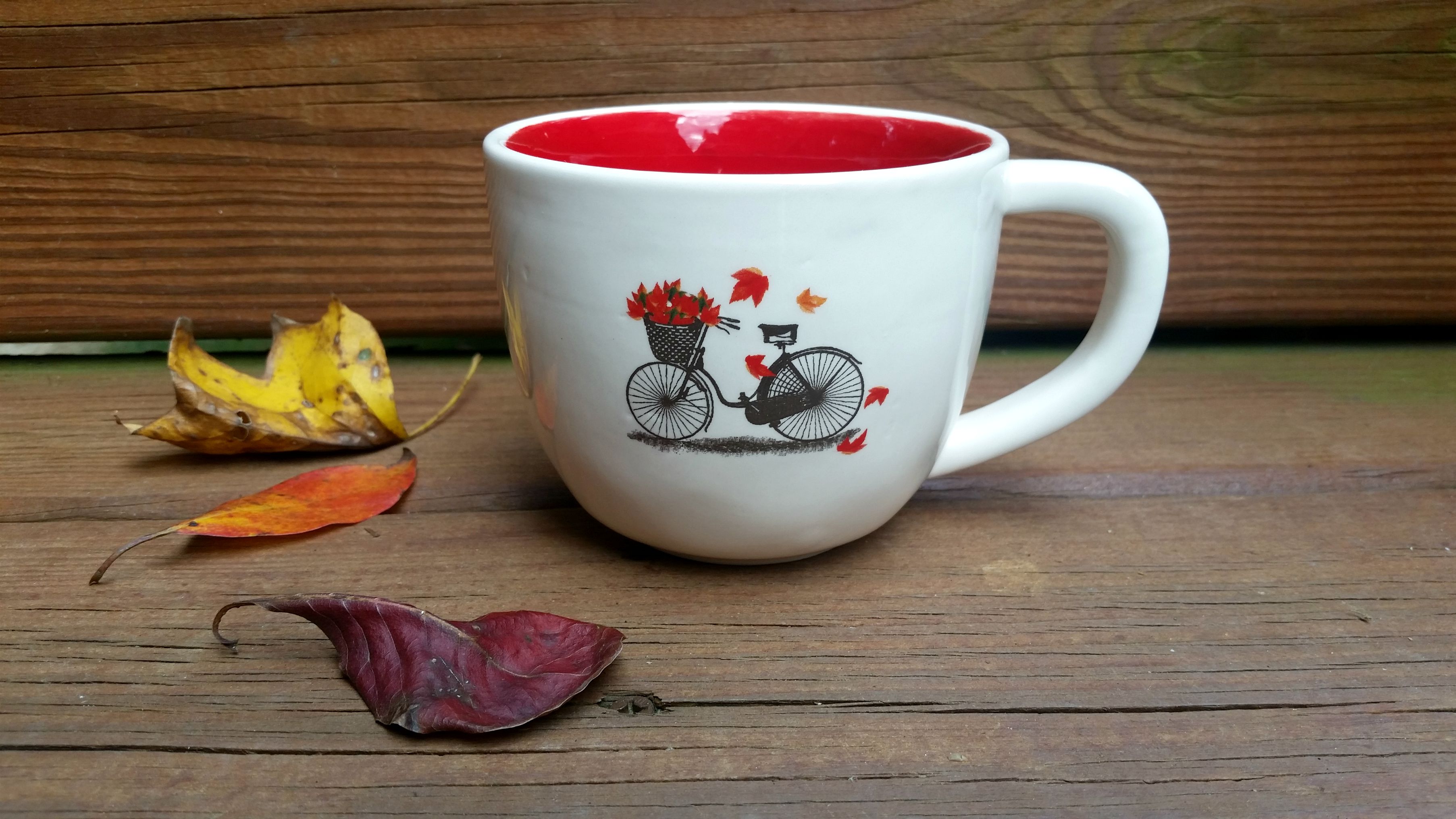 Not that I need another mug or anything, but again, this is one of those things that makes me feel happy and cozy. It brings about images of riding into town on your bike while lightly bundled up on a sunny fall day, feeling quite peaceful and grinning the day away.