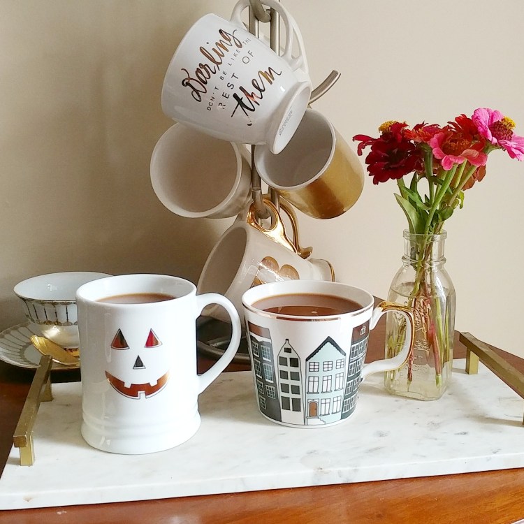 As soon as we got home, I put our Fall blooms in a bud vase I had created from a lavender infused honey jar I had gotten a few years ago from Renaissance Lavender. I loved seeing them on my coffee bar the next morning! Such a lovely pop of color.