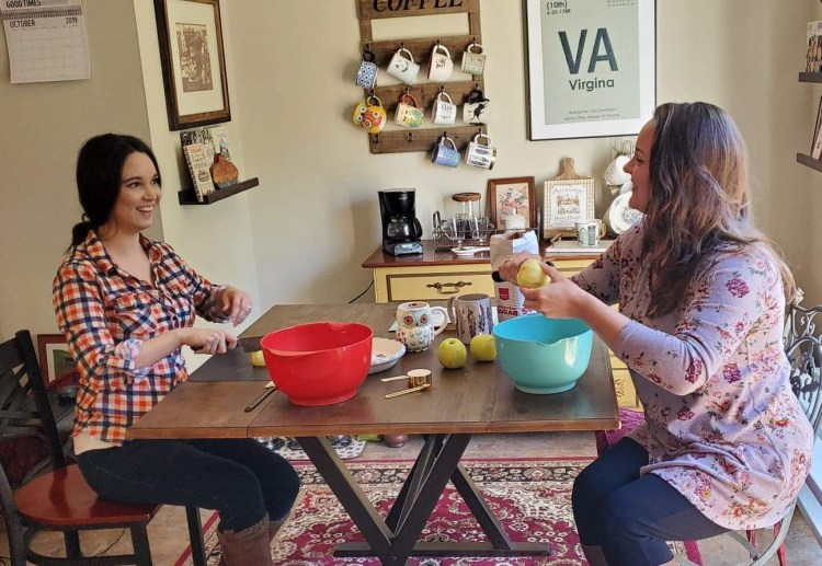 With friends in mind, who did I think of baking apple pie with? My sister, Brandis! We picked out our mugs over at the coffee bar and had hot cider while we put the pie together. Days like this are ones we live for! We can’t get enough!
